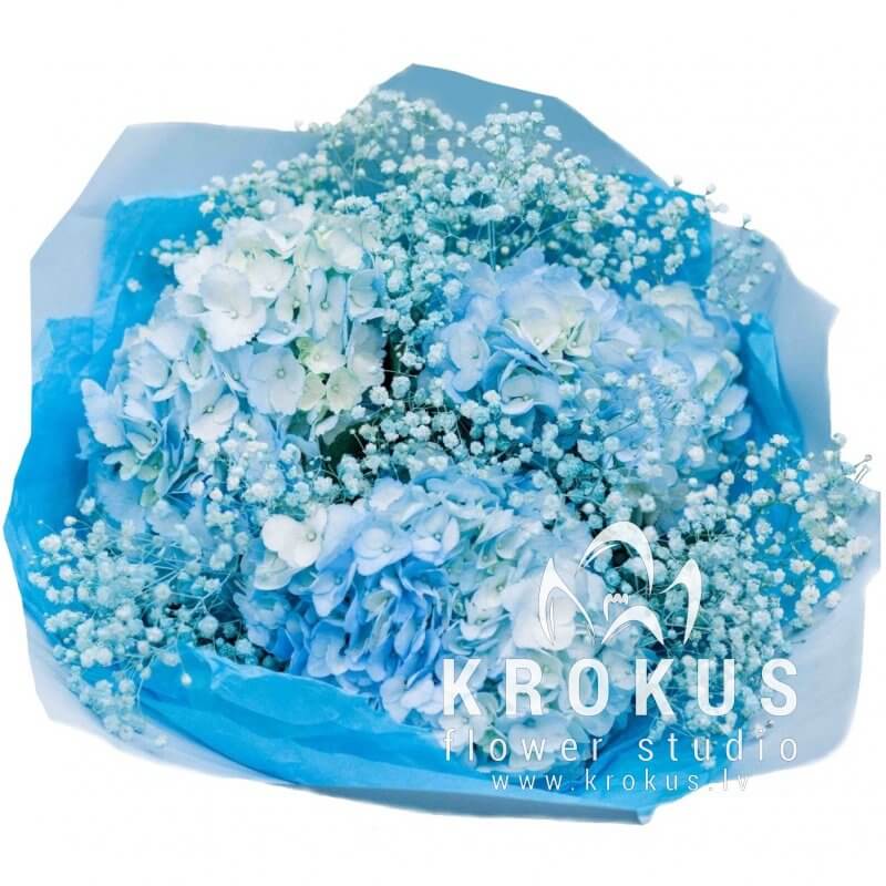 Zilo hortenziju -ģipsofilas pušķis - labākie pušķi ar piegādi pa Rīgu un Latviju. Tagad pasūtīt ziedus ar piegādi pa Rīgu ātri un ērti