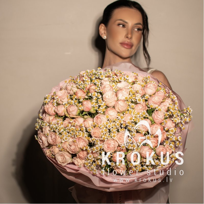 Bouquet of roses and daisies is a bouquet of fresh cut flowers. KROKUS is the best online shop, flower delivery in Riga