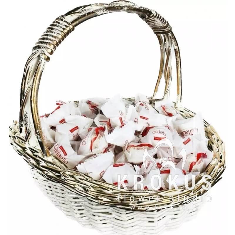 Gift Raffaello basket and any fresh flowers with delivery in Riga in our online flower shop KROKUS