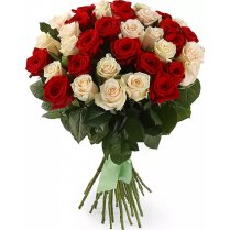 Buy a bouquet of fresh cut flowers red and cream roses. Beautiful flowers, a wonderful bouquet, and delivery in Riga.