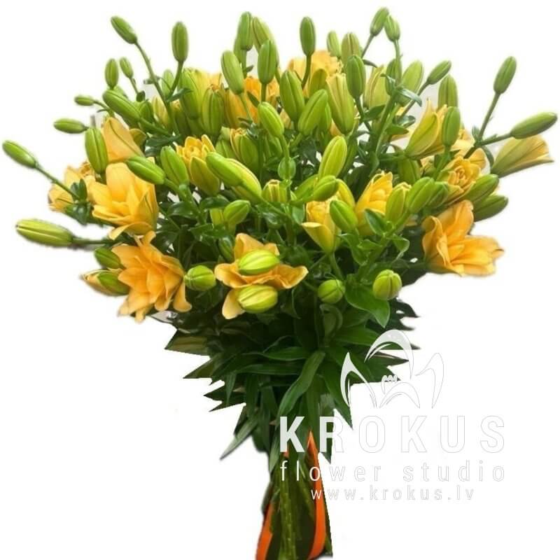 Peach lilies is a bouquet of fresh cut flowers. KROKUS is the best online shop, flower delivery in Riga