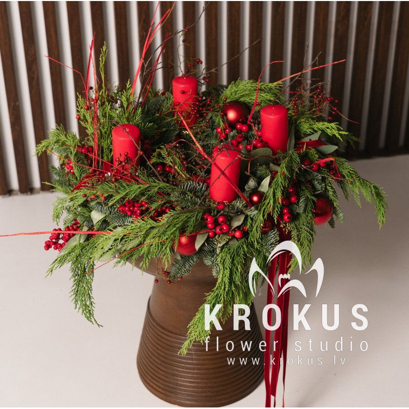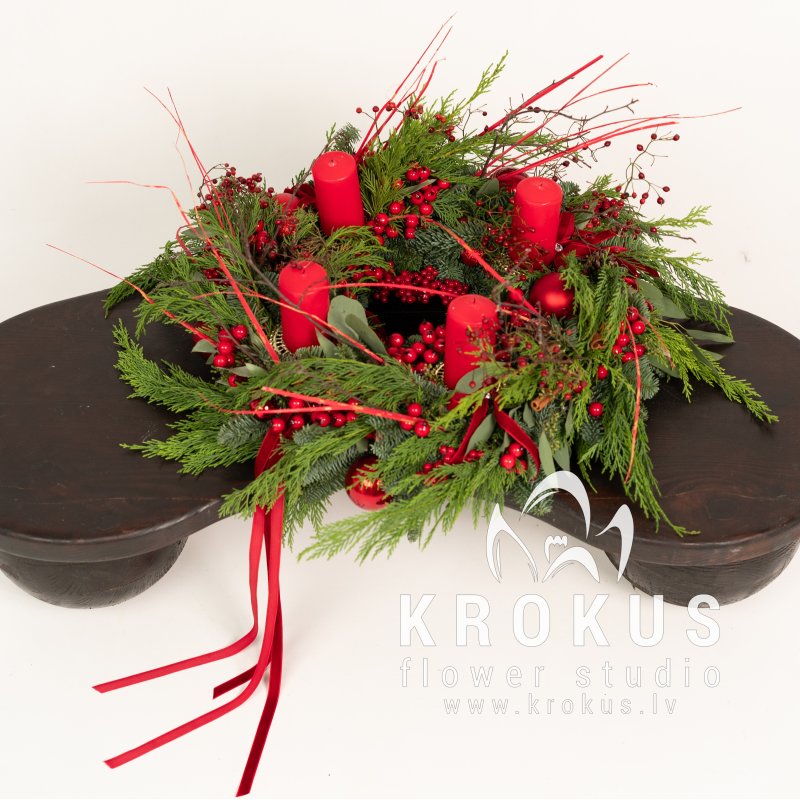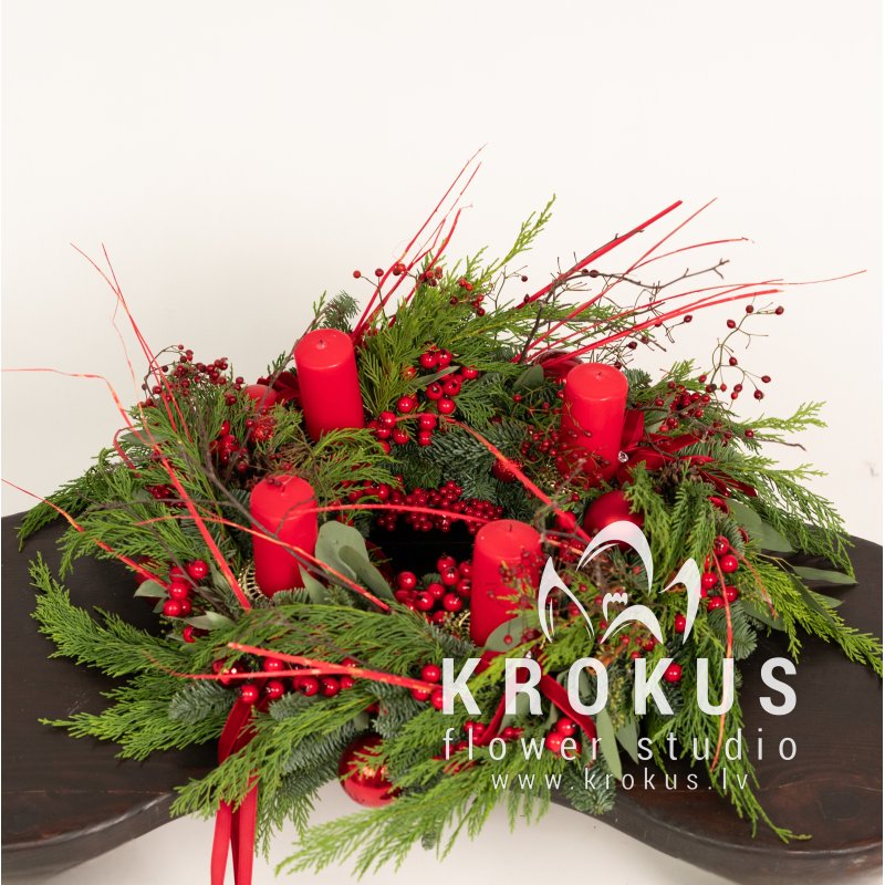 Christmas wreath ''Red Velvet'' is the best bouquets with delivery in Riga and across Latvia. Now you can order flowers with delivery in Riga quickly and conveniently