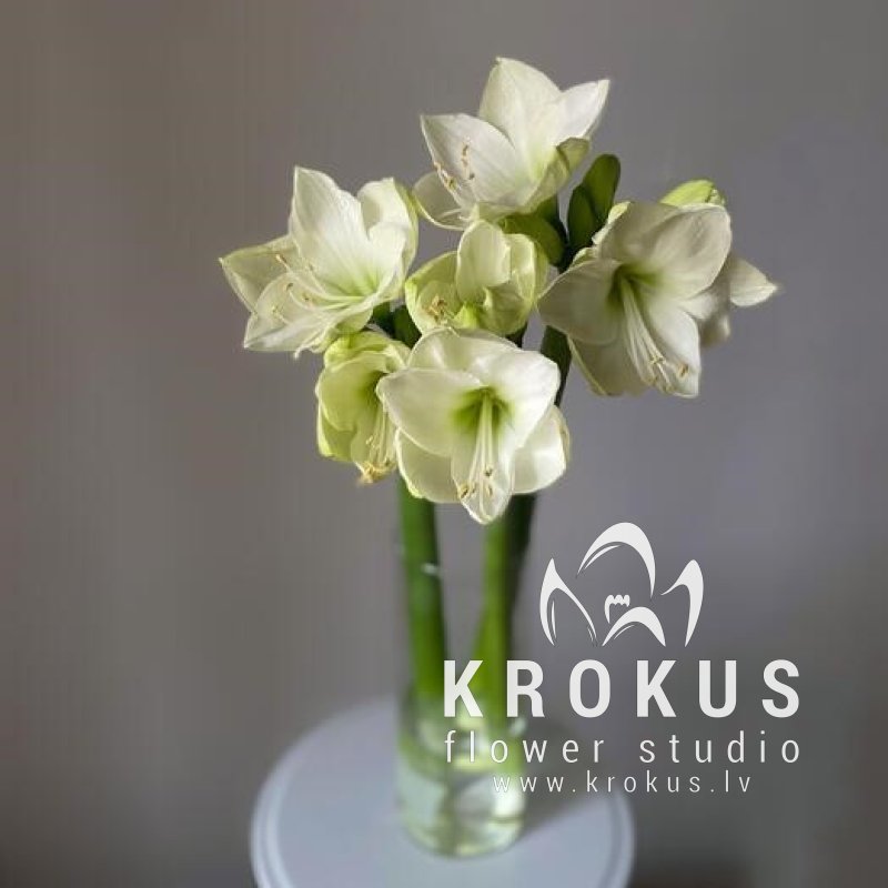 White amaryllis (Hippeastrum) is a bouquet of fresh cut flowers. KROKUS is the best online shop, flower delivery in Riga