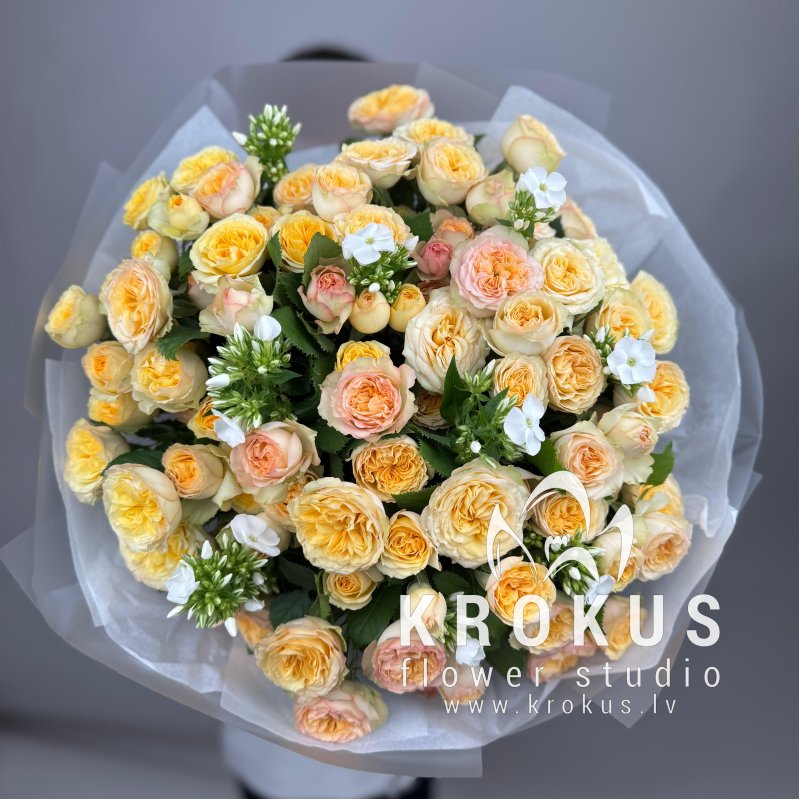 Morning in an Apricot Garden is a bouquet of fresh cut flowers. KROKUS is the best online shop, flower delivery in Riga