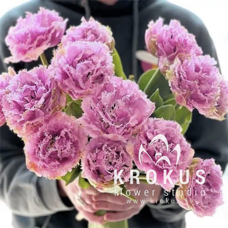 Latvian pink peony-style tulips is a bouquet of fresh cut flowers. KROKUS is the best online shop, flower delivery in Riga