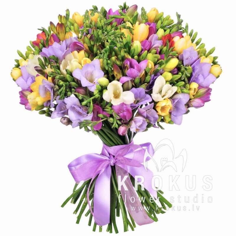 Freesia is a bouquet of fresh cut flowers. KROKUS is the best online shop, flower delivery in Riga