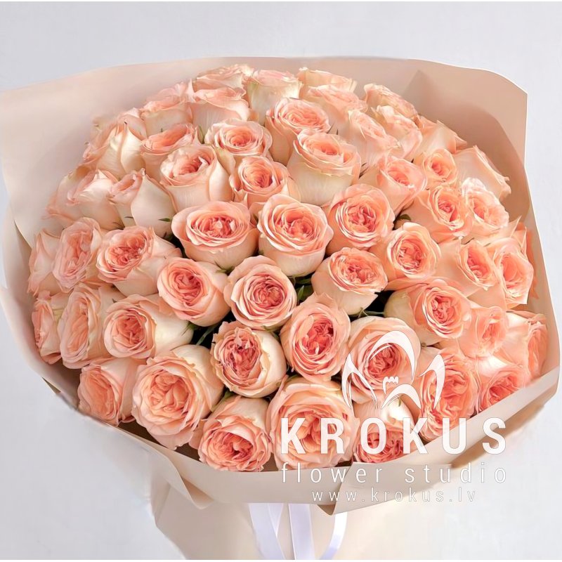 Peach peony roses XXL 50cm❤️ is a bouquet of fresh cut flowers. KROKUS is the best online shop, flower delivery in Riga
