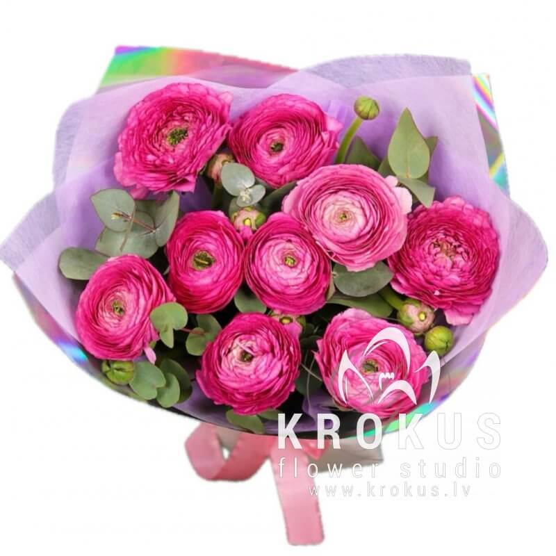 Aveņkrāsas ranunkuļu pušķis šis ir pušķis no svaigiem grieztiem ziediem. KROKUS - labākais ziedu interneta veikals, ziedu piegāde Rīga