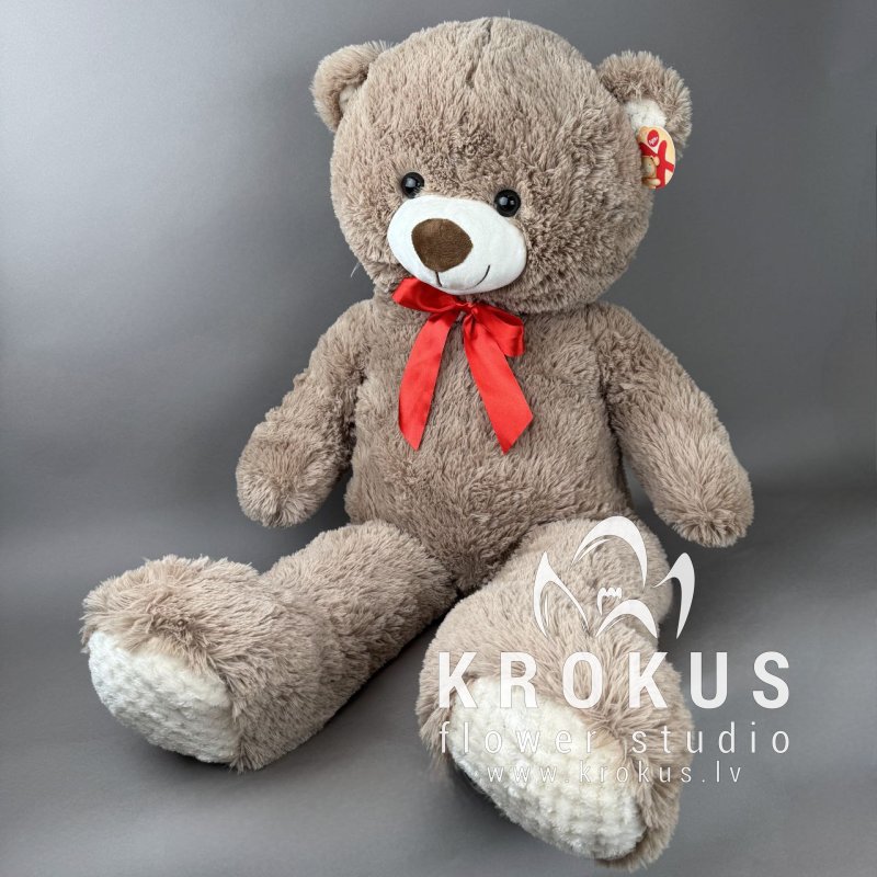 Dāvana Gaiši brūns lācītis 1m un jebkādi svaigi ziedi ar piegādi Rīgā mūsu interneta ziedu veikalā KROKUS