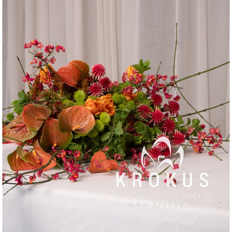 Dekors, Green bell, Ekzotiskie ziedi, Hortenzijas, Antūrija, Molucella