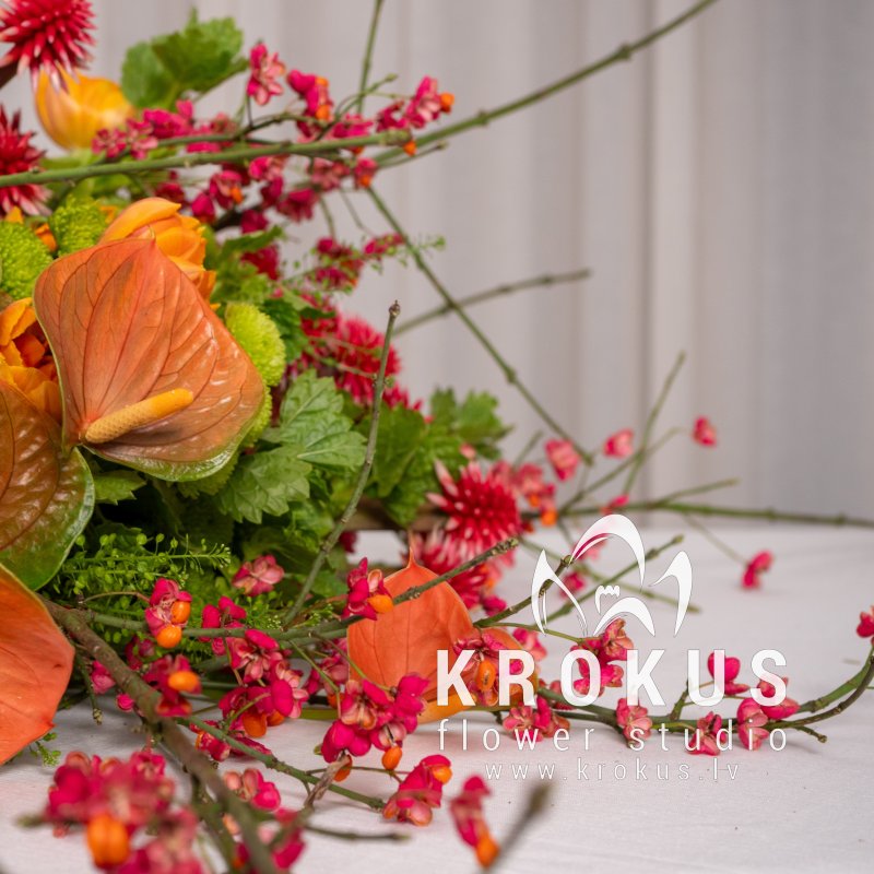 Sastāv no 55 ziediem un dekoratīvajiem augiem