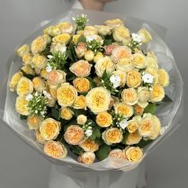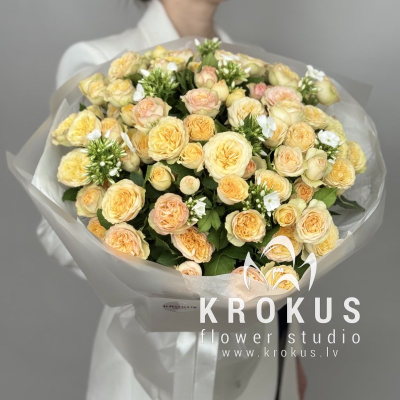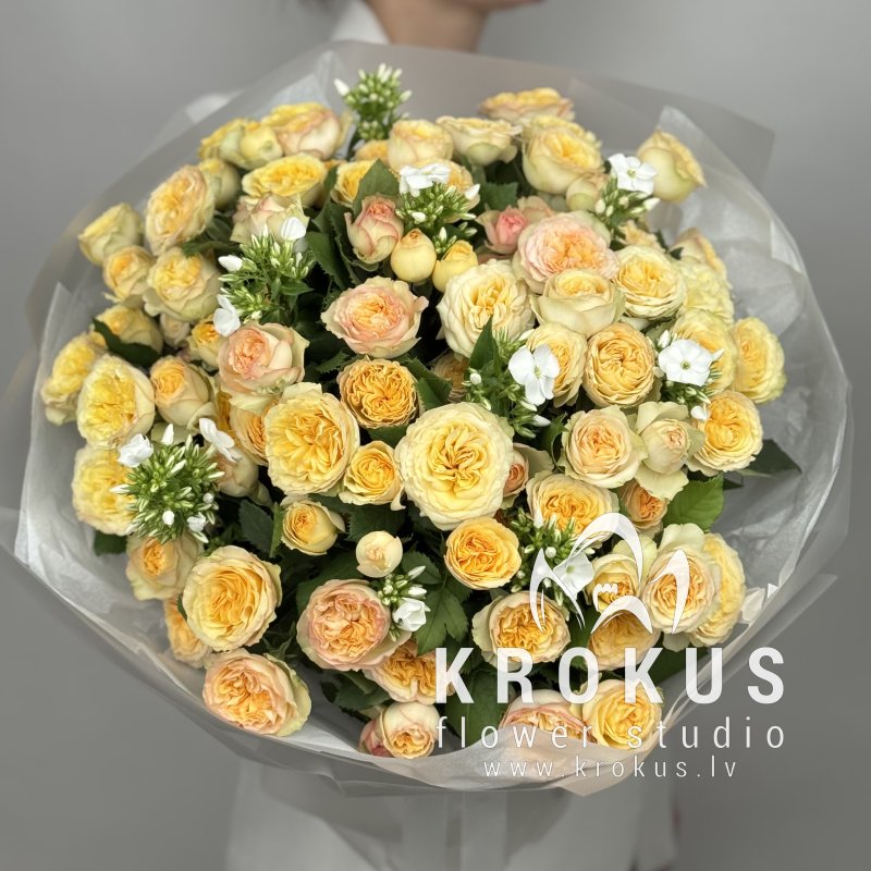 Rīts aprikožu dārzā šis ir pušķis no svaigiem grieztiem ziediem. KROKUS - labākais ziedu interneta veikals, ziedu piegāde Rīga