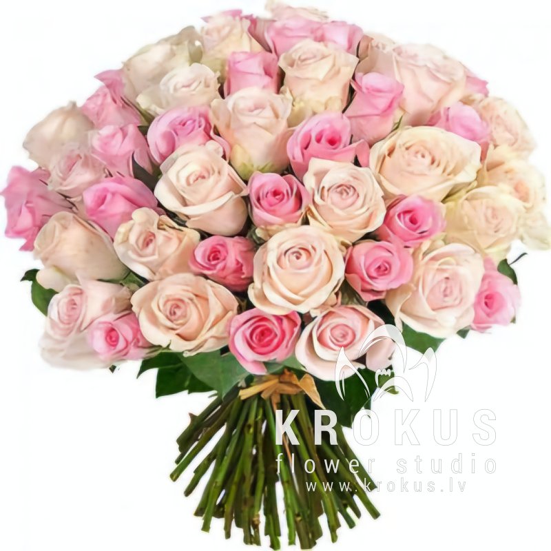 Balto un rozā rožu pušķis 40cm šis ir pušķis no svaigiem grieztiem ziediem. KROKUS - labākais ziedu interneta veikals, ziedu piegāde Rīga