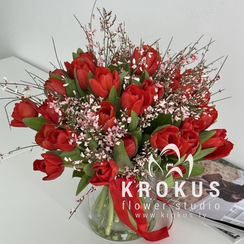 Pavasara sārtais skūpsts šis ir pušķis no svaigiem grieztiem ziediem. KROKUS - labākais ziedu interneta veikals, ziedu piegāde Rīga
