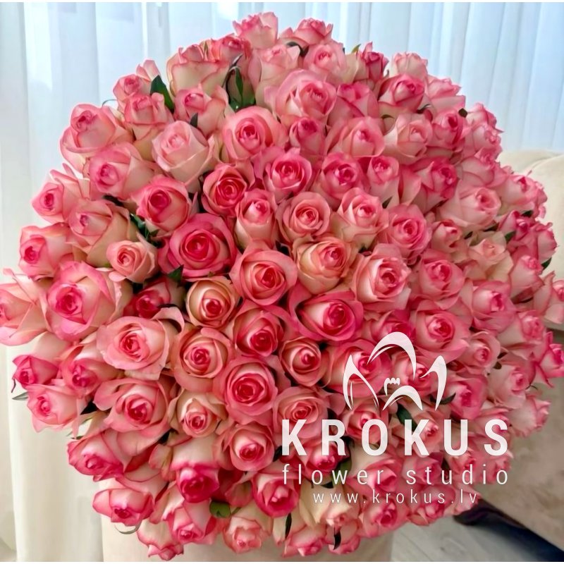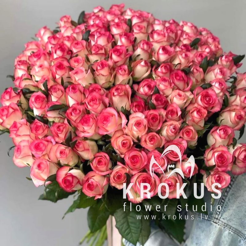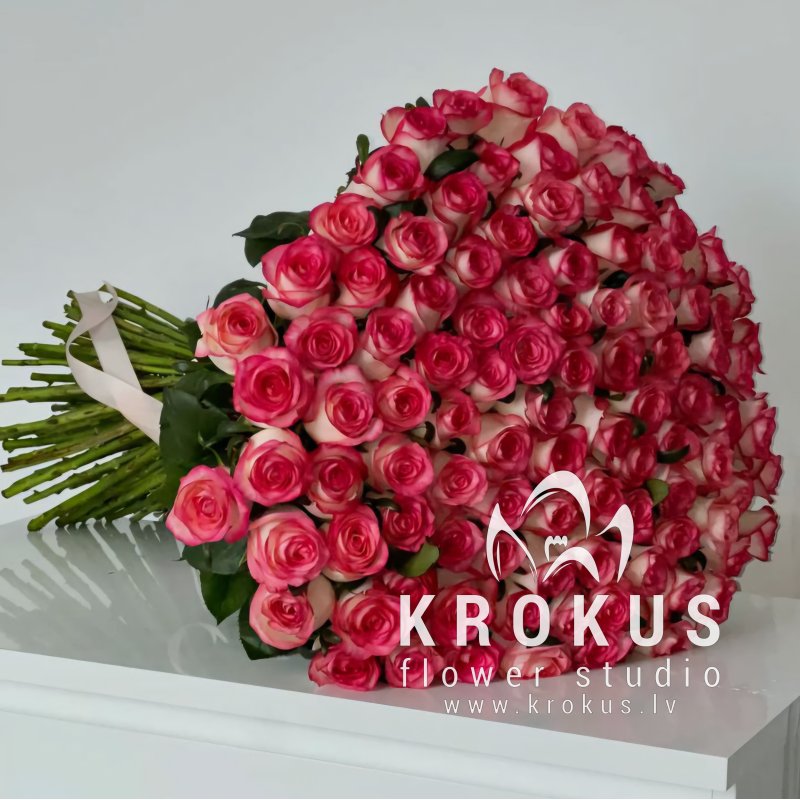 Divkrāsu rozā rozes XXL 50cm šis ir pušķis no svaigiem grieztiem ziediem. KROKUS - labākais ziedu interneta veikals, ziedu piegāde Rīga