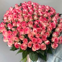 Nopērciet pušķi no svaigiem grieztiem ziediemDivkrāsu rozā rozes XXL 50cm. Šie ir skaisti ziedi, burvēgs pušķis, piega'de pa Rīgu