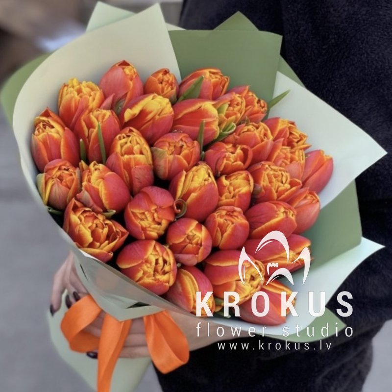 Divkrāsu peonijveida tulpes šis ir pušķis no svaigiem grieztiem ziediem. KROKUS - labākais ziedu interneta veikals, ziedu piegāde Rīga