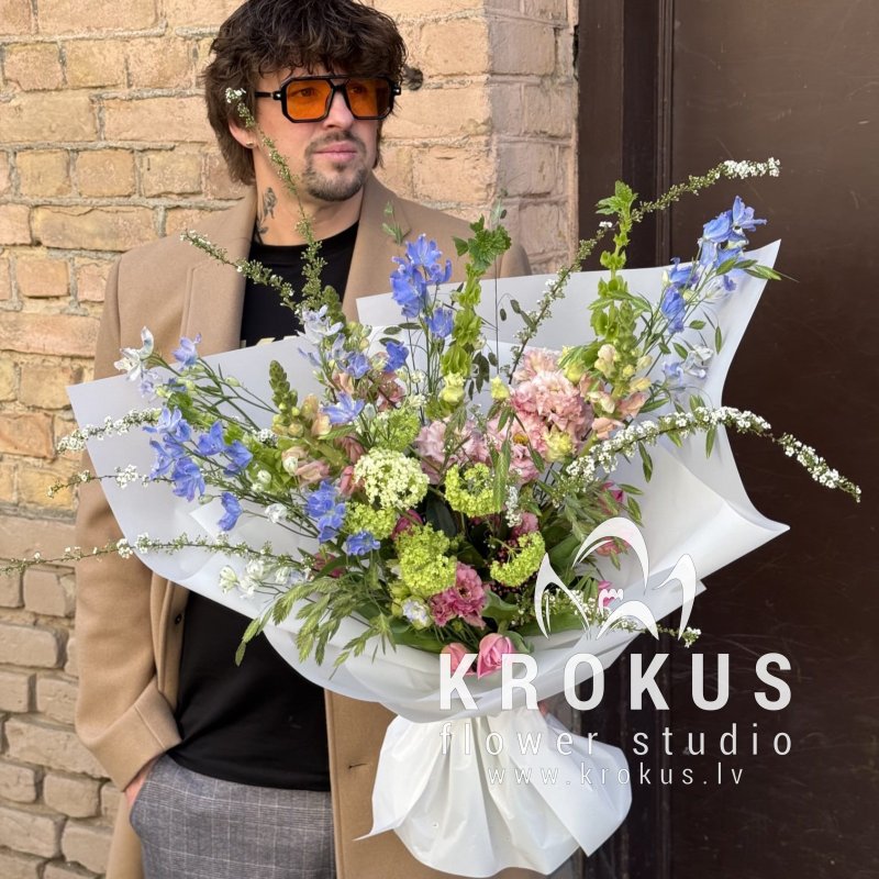 Sastāv no 45 ziediem un dekoratīvajiem augiem