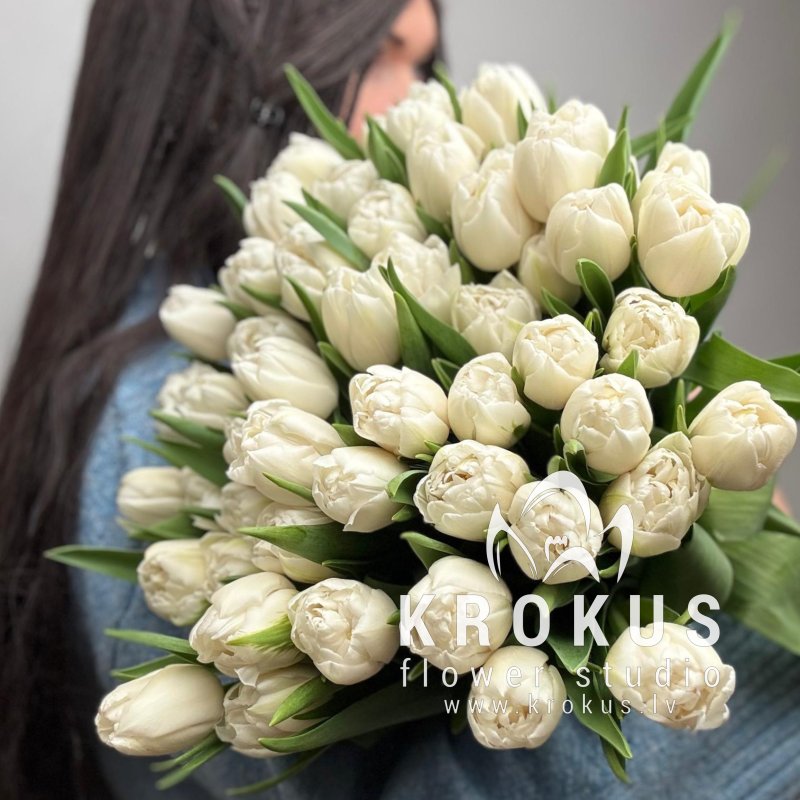 Peonveida baltās tulpes šis ir pušķis no svaigiem grieztiem ziediem. KROKUS - labākais ziedu interneta veikals, ziedu piegāde Rīga