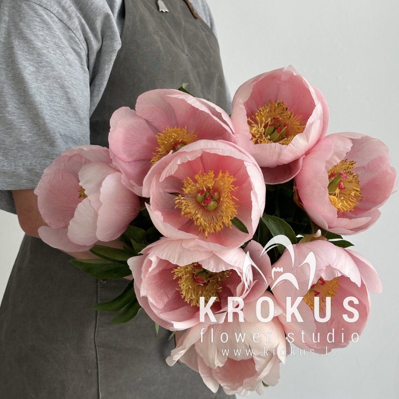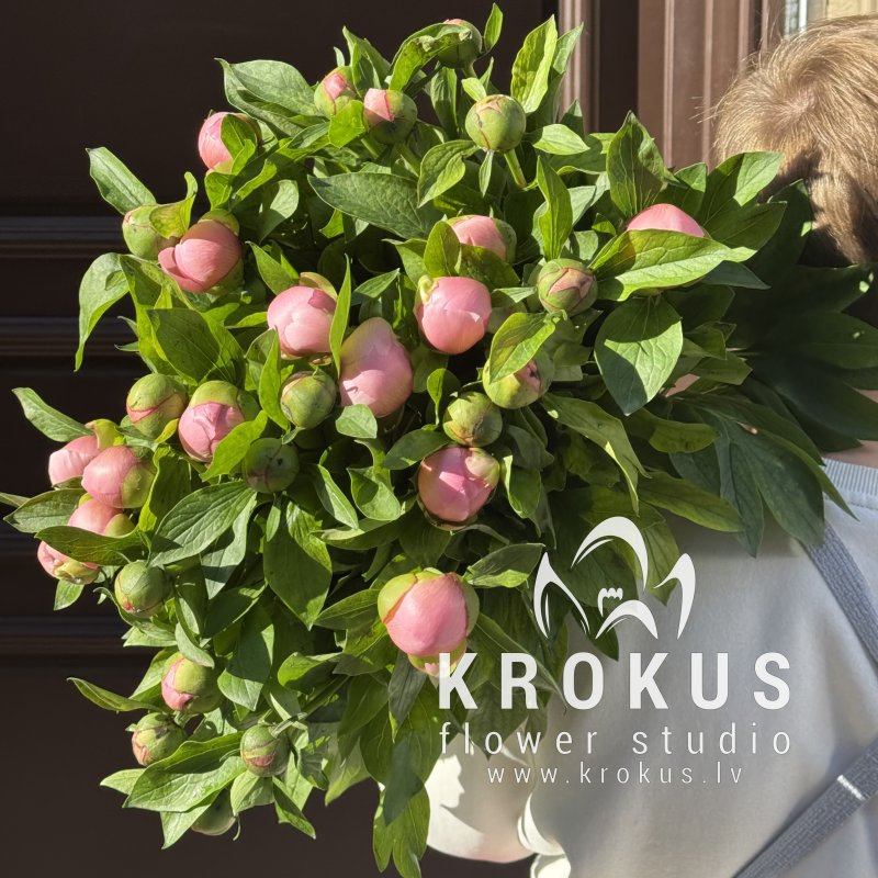 Laša krāsas peonijas šis ir pušķis no svaigiem grieztiem ziediem. KROKUS - labākais ziedu interneta veikals, ziedu piegāde Rīga