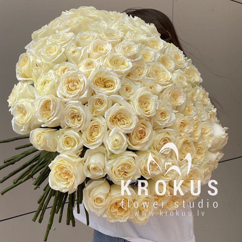 Krēmīgas peonijveida rozes šis ir pušķis no svaigiem grieztiem ziediem. KROKUS - labākais ziedu interneta veikals, ziedu piegāde Rīga