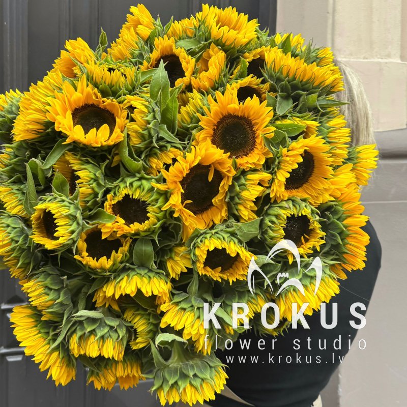 Saulespuķes šis ir pušķis no svaigiem grieztiem ziediem. KROKUS - labākais ziedu interneta veikals, ziedu piegāde Rīga