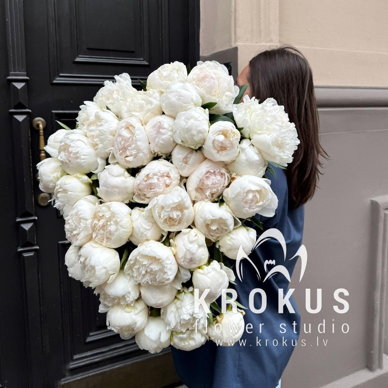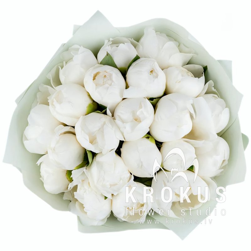 Baltas peonijas šis ir pušķis no svaigiem grieztiem ziediem. KROKUS - labākais ziedu interneta veikals, ziedu piegāde Rīga