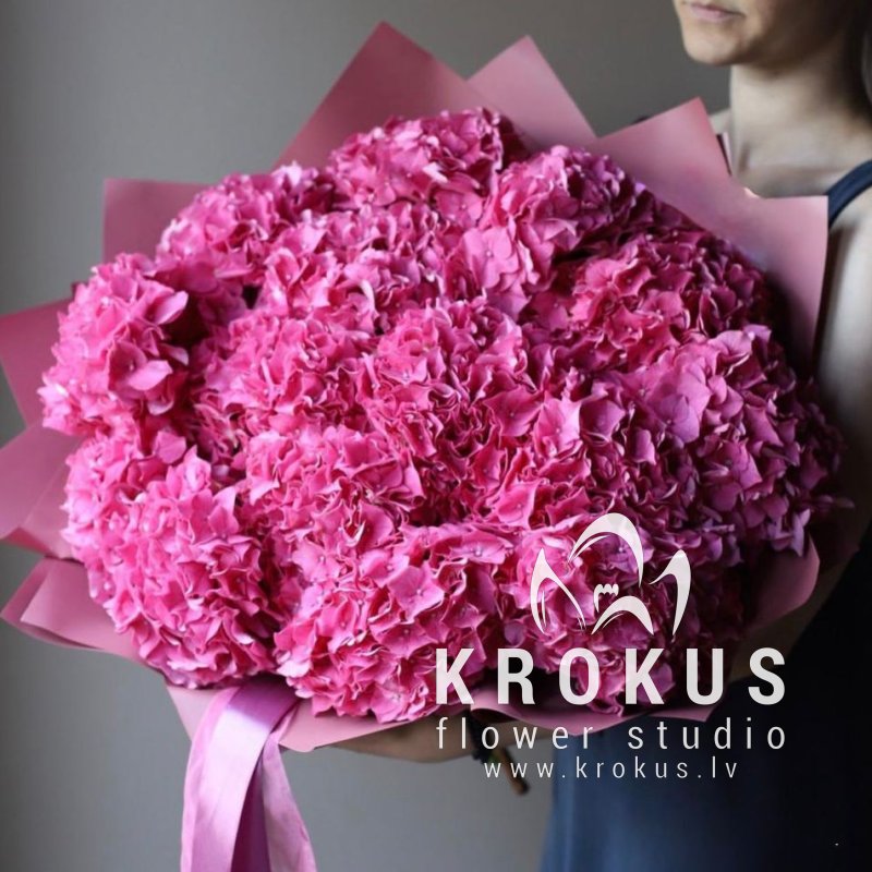 Rozā hortenziju pušķis - labākie pušķi ar piegādi pa Rīgu un Latviju. Tagad pasūtīt ziedus ar piegādi pa Rīgu ātri un ērti