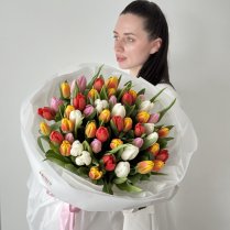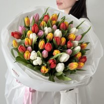 Nopērciet pušķi no svaigiem grieztiem ziediemKrāsainu tulpju pušķis. Šie ir skaisti ziedi, burvēgs pušķis, piega'de pa Rīgu