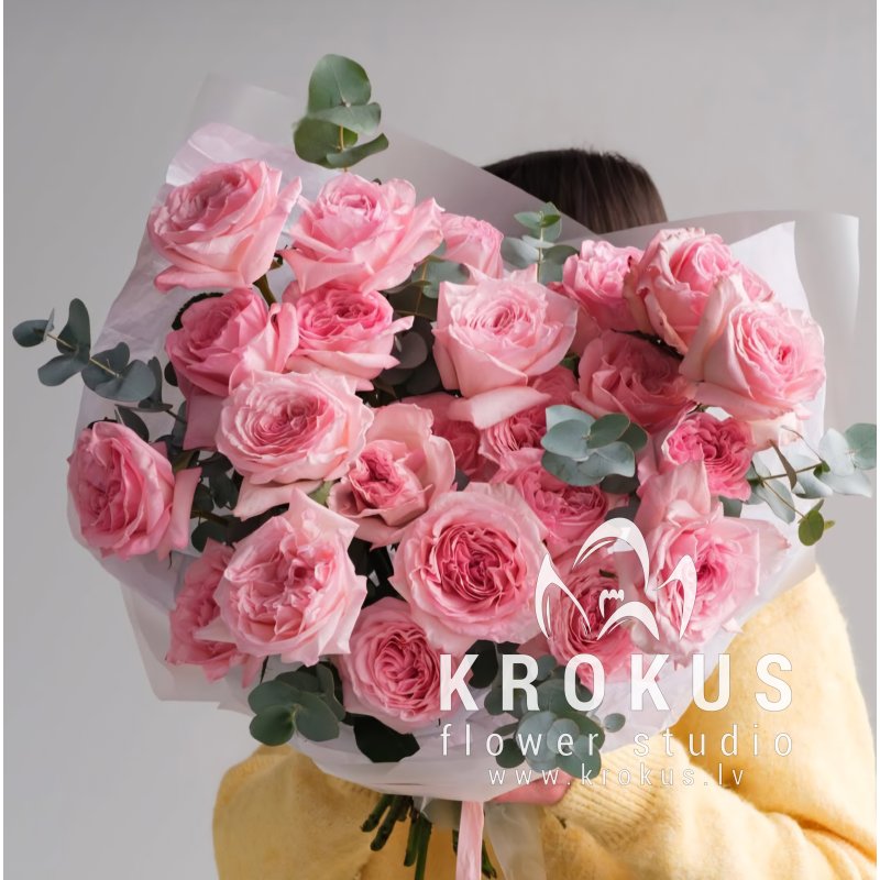 Ароматные пионовидные розы это букет из свежих срезанных цветов. KROKUS - лучший интернет магазин, доставка цветов в Риге