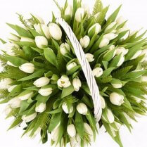 Корзина белых тюльпанов