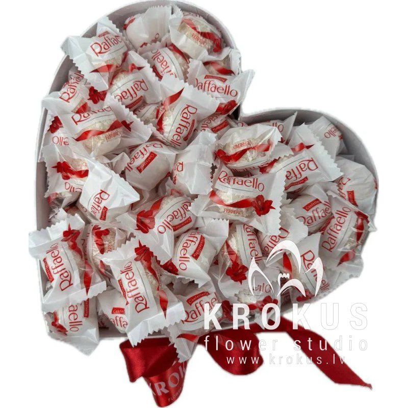 Коробка в форме сердца Raffaello 900гр это букет из свежих срезанных цветов. KROKUS - лучший интернет магазин, доставка цветов в Риге