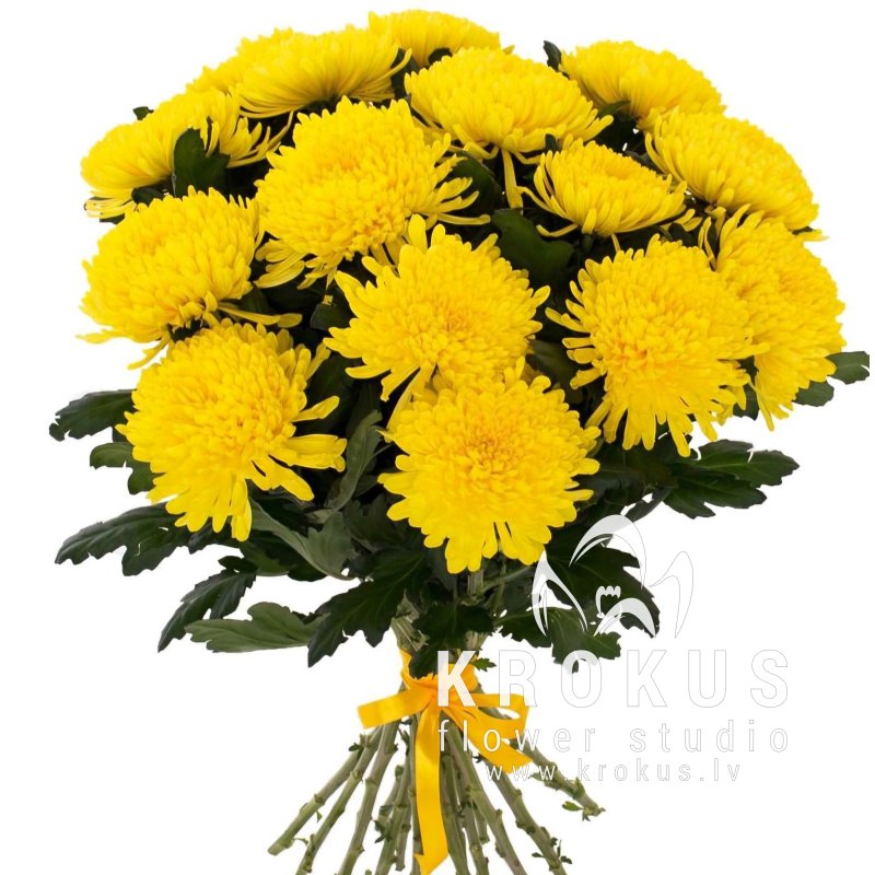 Букет желтых хризантем это букет из свежих срезанных цветов. KROKUS - лучший интернет магазин, доставка цветов в Риге