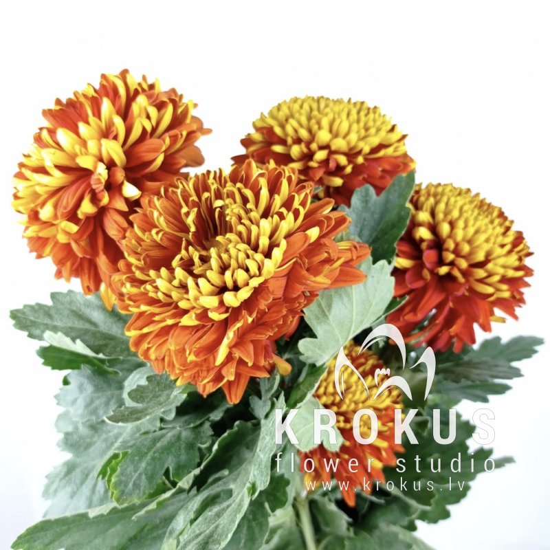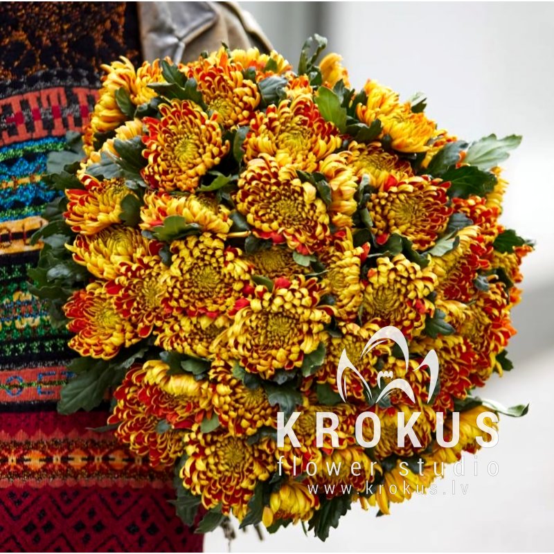 Огненная хризантема это букет из свежих срезанных цветов. KROKUS - лучший интернет магазин, доставка цветов в Риге