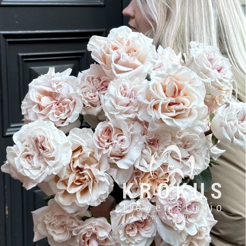 Пионовидные пудровые розы это букет из свежих срезанных цветов. KROKUS - лучший интернет магазин, доставка цветов в Риге