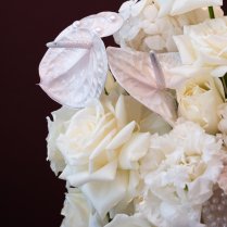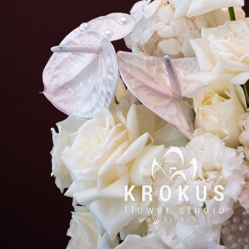 Лизиантусы (эустома), Белые розы, Гортензии, Хризантемы, Маттиола, Каллы, Антуриум