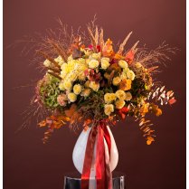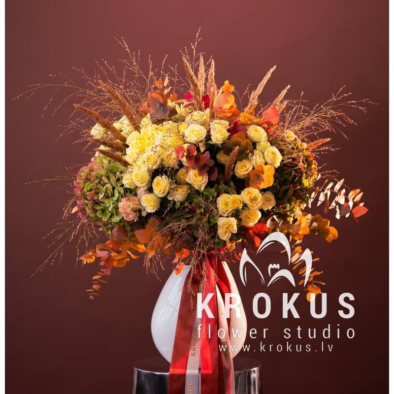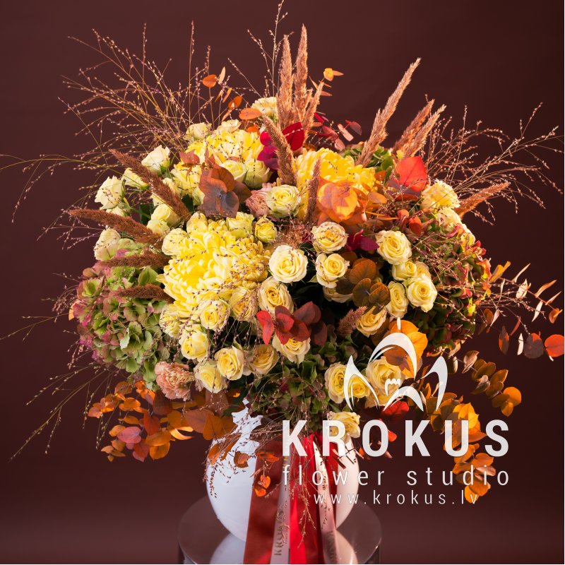 Танец янтаря это необычный букет. Такие букеты содержат необычные живые цветы или необычные сочетания цветов. Доставка Рига и Латвия дешево