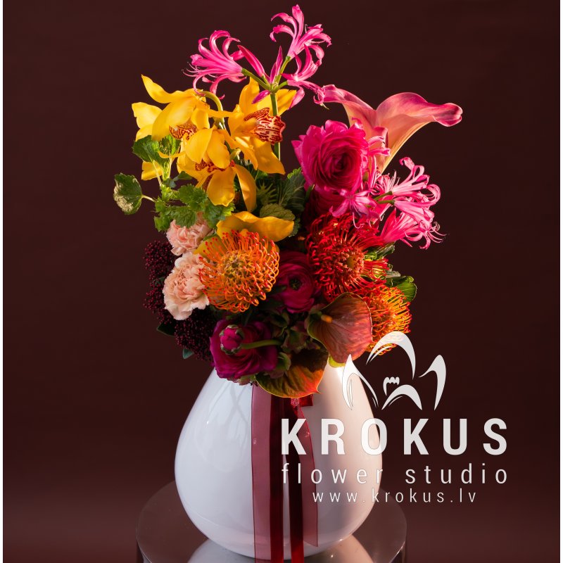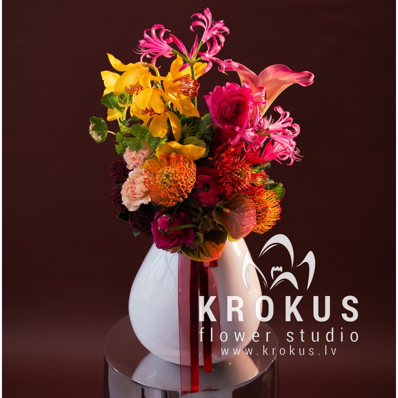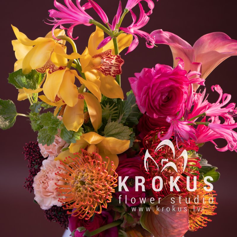 Тропический коктейль это необычный букет. Такие букеты содержат необычные живые цветы или необычные сочетания цветов. Доставка Рига и Латвия дешево