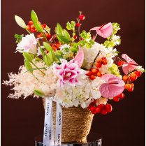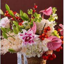 Состоит из 35 цветков и декоративных растений