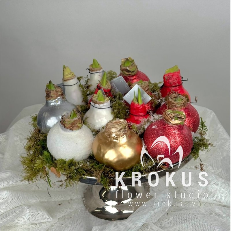 Амариллис в воске (цвет на выбор или случайный) это букет из свежих срезанных цветов. KROKUS - лучший интернет магазин, доставка цветов в Риге