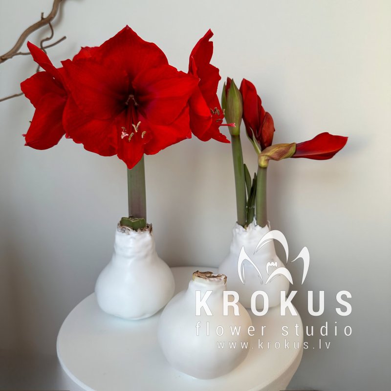 Амариллис в воске - поштучно это букет из свежих срезанных цветов. KROKUS - лучший интернет магазин, доставка цветов в Риге