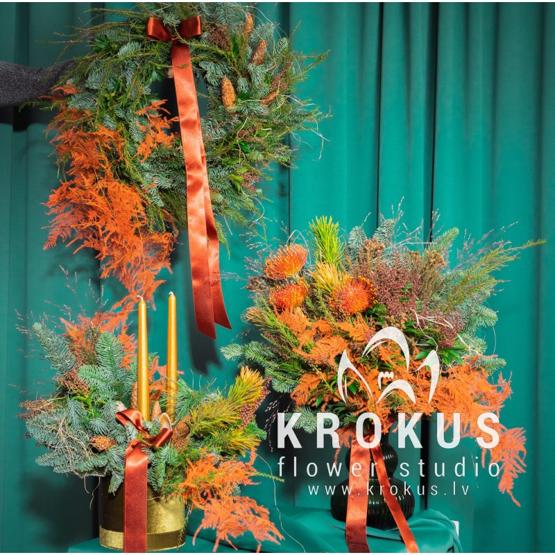 Закажите букет цветов Рождественский комплект тепло праздника сейчас. Красивые букеты из живых цветов, большие букеты, цветы на заказ с доставкой по Риге и Латвии
