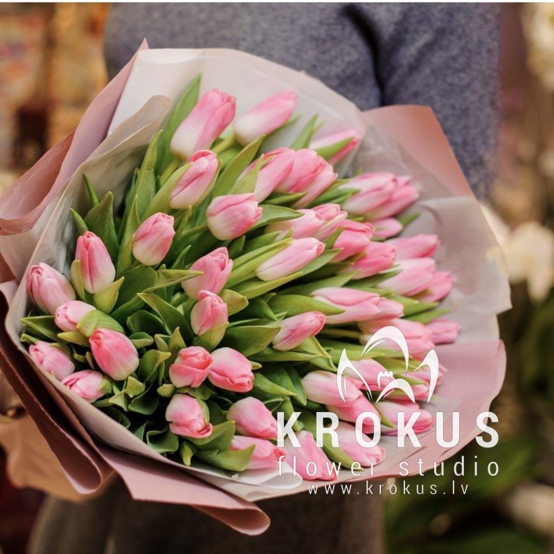 Латвийские бело-розовые тюльпаны Supermodel это букет из свежих срезанных цветов. KROKUS - лучший интернет магазин, доставка цветов в Риге