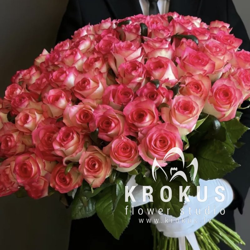 Двухцветные розовые розы XXL 50см это букет из свежих срезанных цветов. KROKUS - лучший интернет магазин, доставка цветов в Риге