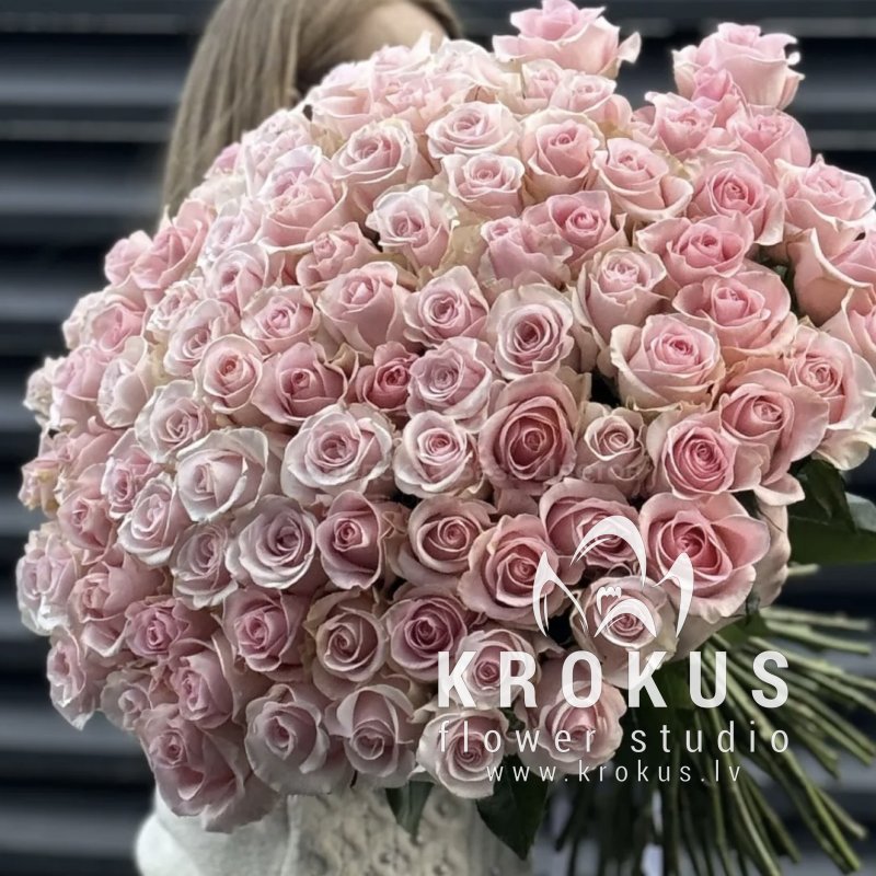 Нежно-розовые розы XXL 50cm это букет из свежих срезанных цветов. KROKUS - лучший интернет магазин, доставка цветов в Риге