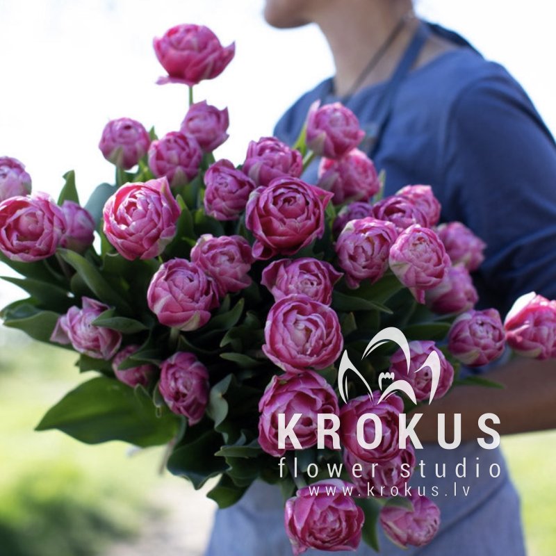 Латвийские пионовидные розово-белые тюльпаны это букет из свежих срезанных цветов. KROKUS - лучший интернет магазин, доставка цветов в Риге
