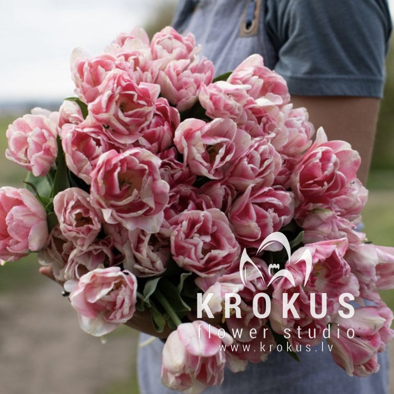 Латвийские пионовидные бело-розовые тюльпаны это букет из свежих срезанных цветов. KROKUS - лучший интернет магазин, доставка цветов в Риге