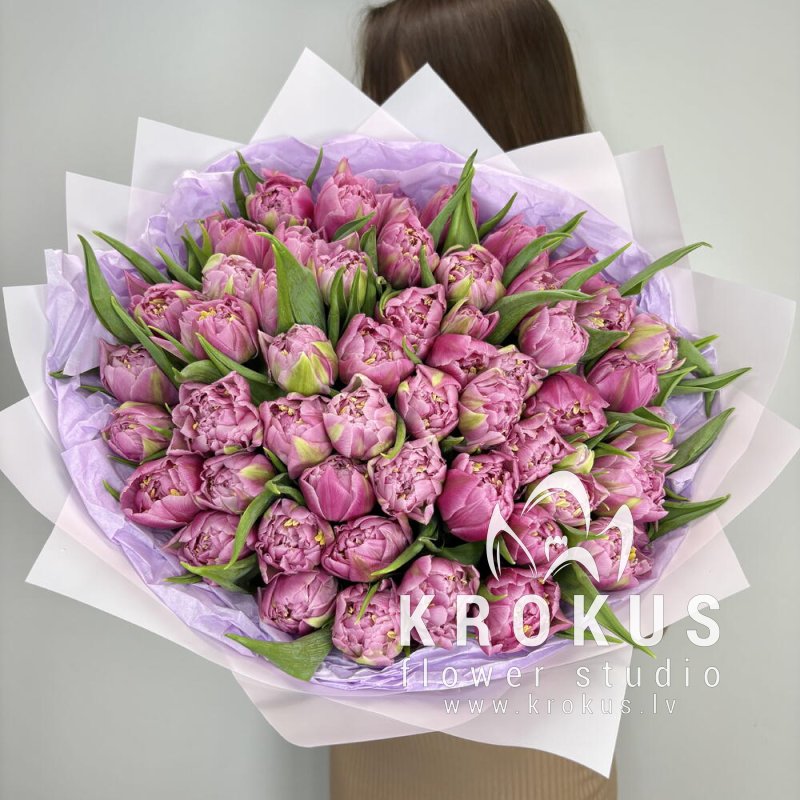 Розовые пионовидные тюльпаны это букет из свежих срезанных цветов. KROKUS - лучший интернет магазин, доставка цветов в Риге