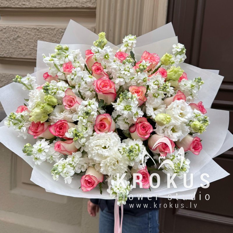 Букет из роз и маттиолы это букет из свежих срезанных цветов. KROKUS - лучший интернет магазин, доставка цветов в Риге