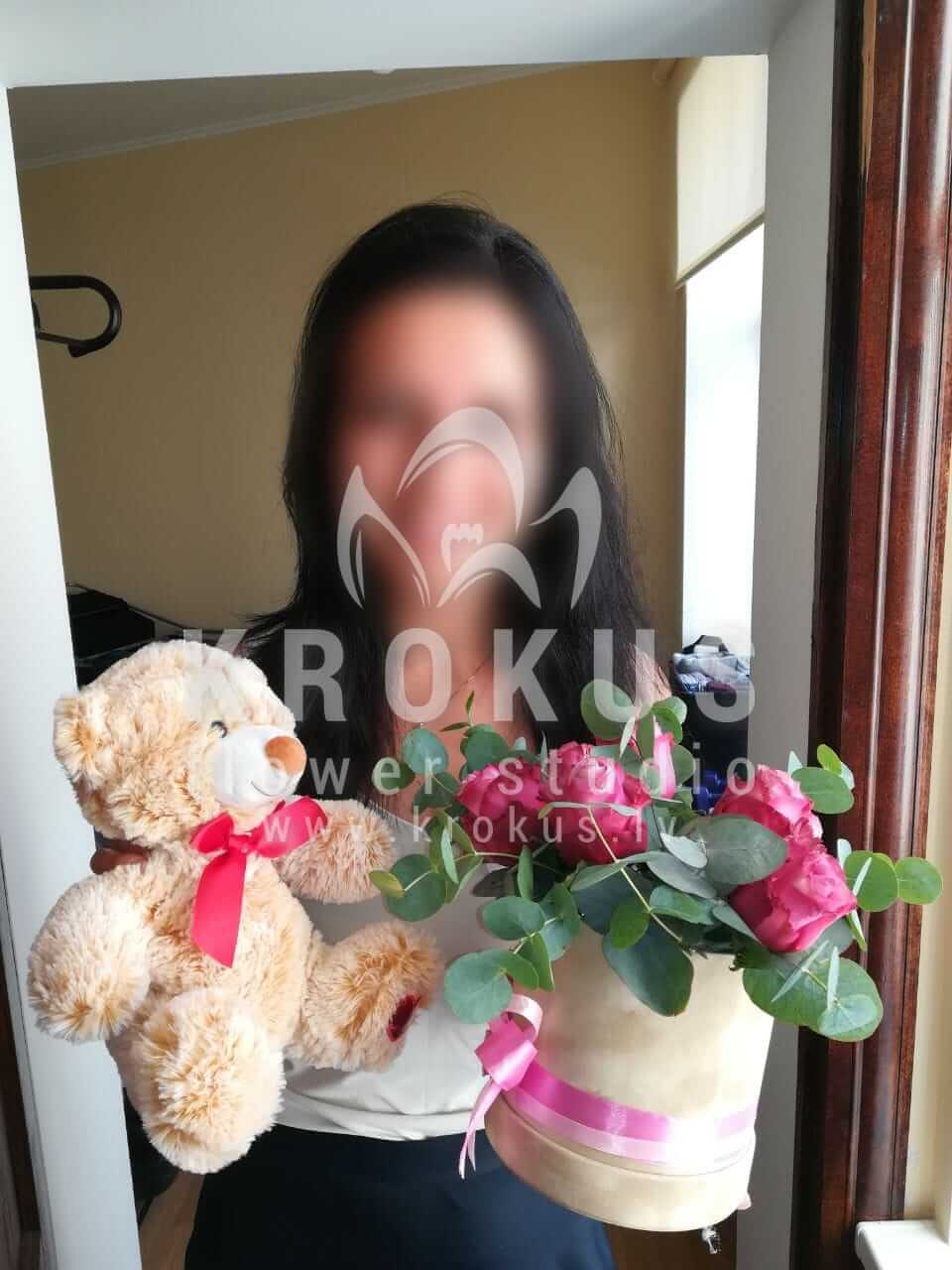 Ziedu piegāde Anita pa Rīgu (Fotogrāfijai ir ilustratīvs nolūks. Kastes krāsa var atšķirties), Ziedu piegāde Lācis ar sirsniņām 25cm pa Rīgu .